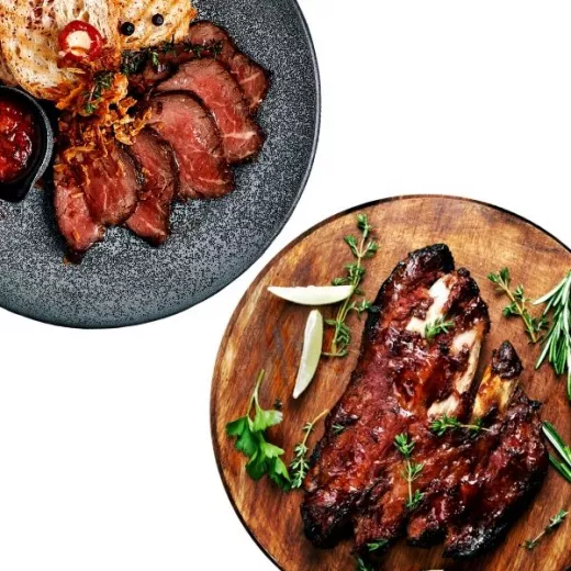 Ідеально просмажений стейк, соковиті реберця, смачний м’ясний хліб і м’яка яловичина Веллінгтон, що хрумтить зовні.