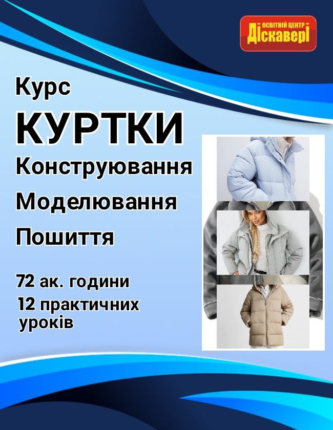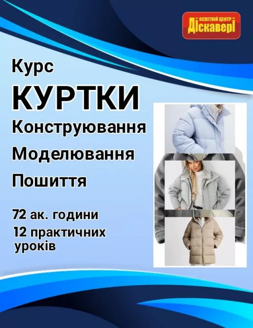 Результат: після завершення курсу ви зможете впевнено створювати викройки, моделювати та шити куртки різних фасонів, розширюючи власні можливості у сфері конструювання та шиття.