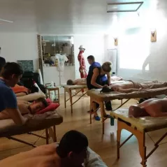 Заняття проходять у затишному приміщенні, обладнаному масажними столами та усіма необхідними матеріалами.