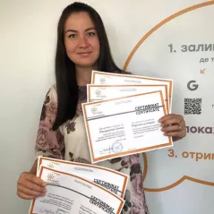 🧾 Який документ видається після проходження курсу? Після завершення навчання студент отримує: Сертифікат з QR-кодом українською та англійською мовами. За бажанням — додаток до сертифіката з описом усіх пройдених тем (теорія + практика) українською та англійською. *Додаток оплачується окремо.