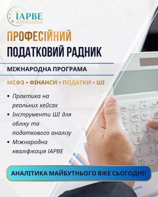 Станьте експертом з бухгалтерського та податкового комплаєнсу за міжнародними стандартами IAPBE. Опануйте 3 ключові модулі та інструменти цифрової трансформації. Міжнародний сертифікат для кар'єрного зростання.