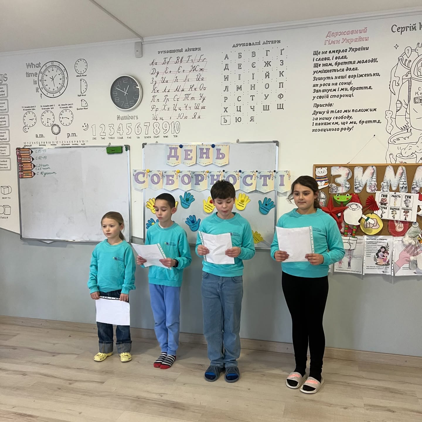 - Повна двомовність (українська + англійська по 50 %): Кожен клас ведуть двоє партнерських вчителів — україномовний та англомовний, без перемикань під час уроку.