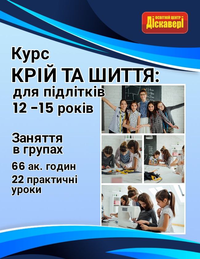 Програма створена для підлітків 12–15 років, які мріють навчитися шити власний одяг та працювати з викройками. На заняттях учні засвоюють основи крою, ознайомлюються з технологіями пошиття сучасних виробів, вчаться користуватися швейною машинкою та розвивають креативне мислення.