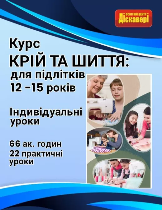 Програма створена для підлітків 12–15 років, які мріють навчитися шити власний одяг та працювати з викройками. На заняттях учні засвоюють основи крою, ознайомлюються з технологіями пошиття сучасних виробів, вчаться користуватися швейною машинкою та розвивають креативне мислення.