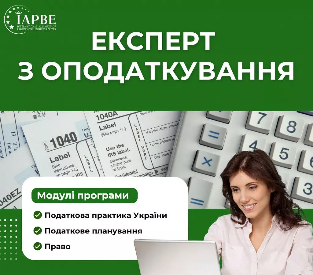 Міжнародна програма "Національні та міжнародні системи оподаткування", кваліфікація "Експерт з оподаткування", від Міжнародного Альянсу Професійної Бізнес-еліти – IAPBE