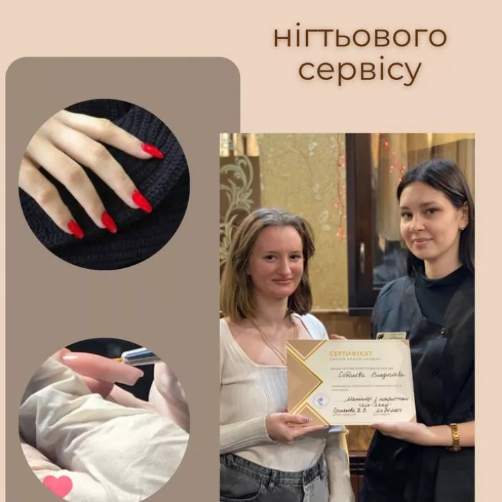- Апаратний і комбінований манікюр — підбір техніки манікюру відповідно до типу та стану кутикули.