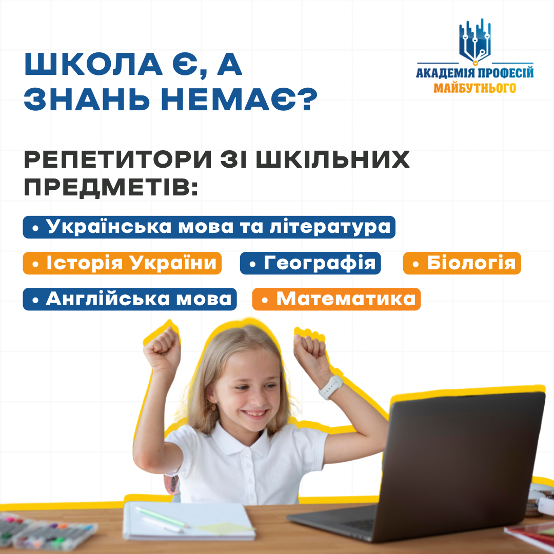 Онлайн-репетитор для учнів 1-9 класів. Індивідуальний графік та 3 формати навчання: персонально, в дуеті або групі до 4 осіб. Живі уроки з викладачем та технічна підтримка на всіх етапах.